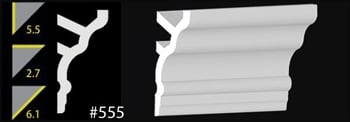 Our 5-1/2" crown moldings is good for high and vaulted ceilings. It is often used in commercial applications also. To do this in wood would require a built up crown using several pieces of crown. Easy to install - just paint, caulk and press.
