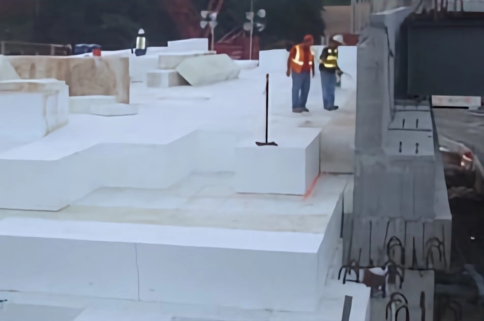 Geofoam made with EPS is a lightweight, rigid foam material that has been used around the world as lightweight fill, compressible inclusions, thermal insulation, and drainage. EPS geofoam is approximately 100 times lighter than most soil and at least 20 to 30 times lighter than other lightweight fill alternatives. This extreme difference in unit weight compared to other materials makes EPS geofoam an attractive fill material. Because it is a soil alternative, EPS geofoam embankments can be covered to look like normal sloped embankments or finished to look like a wall.