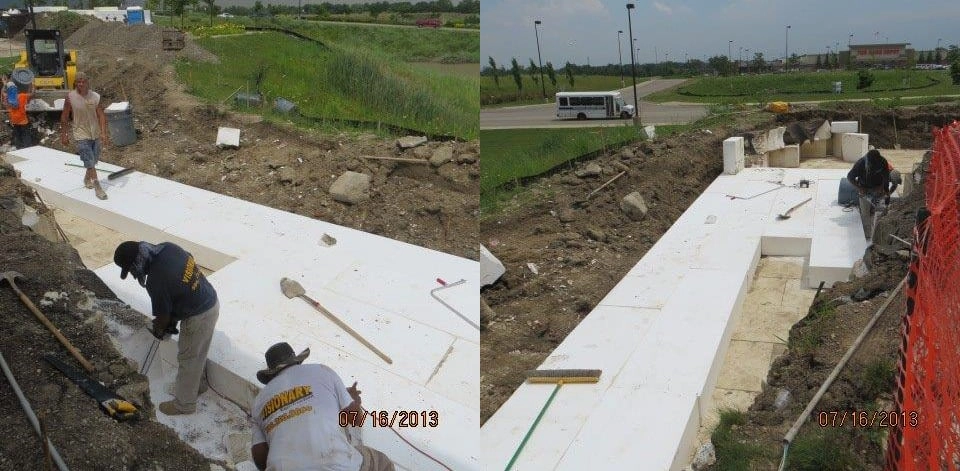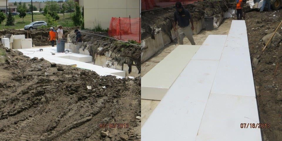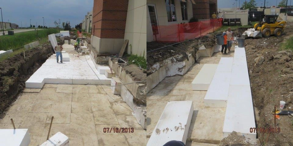 When Panera Bread decided to add a drive up window it was necessary to replace the existing EPS15 Geofoam under that portion of the property with a denser EPS39 Geofoam Blocks. Acme Enterprises purchased the material from Universal Foam Products precut in 12 inch thick blocks and the demolition and installation in Allen park, WI 48101 went very quickly.