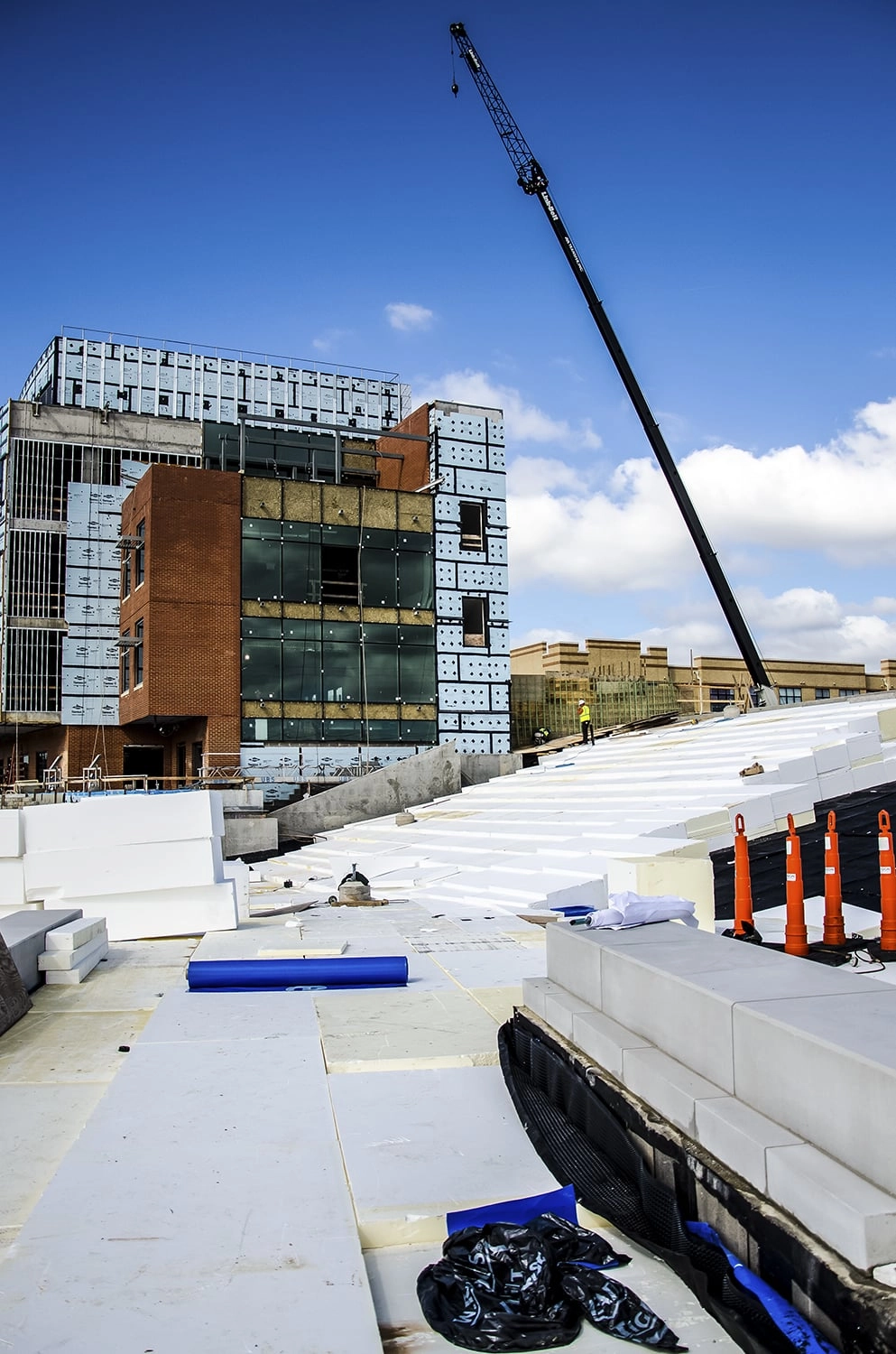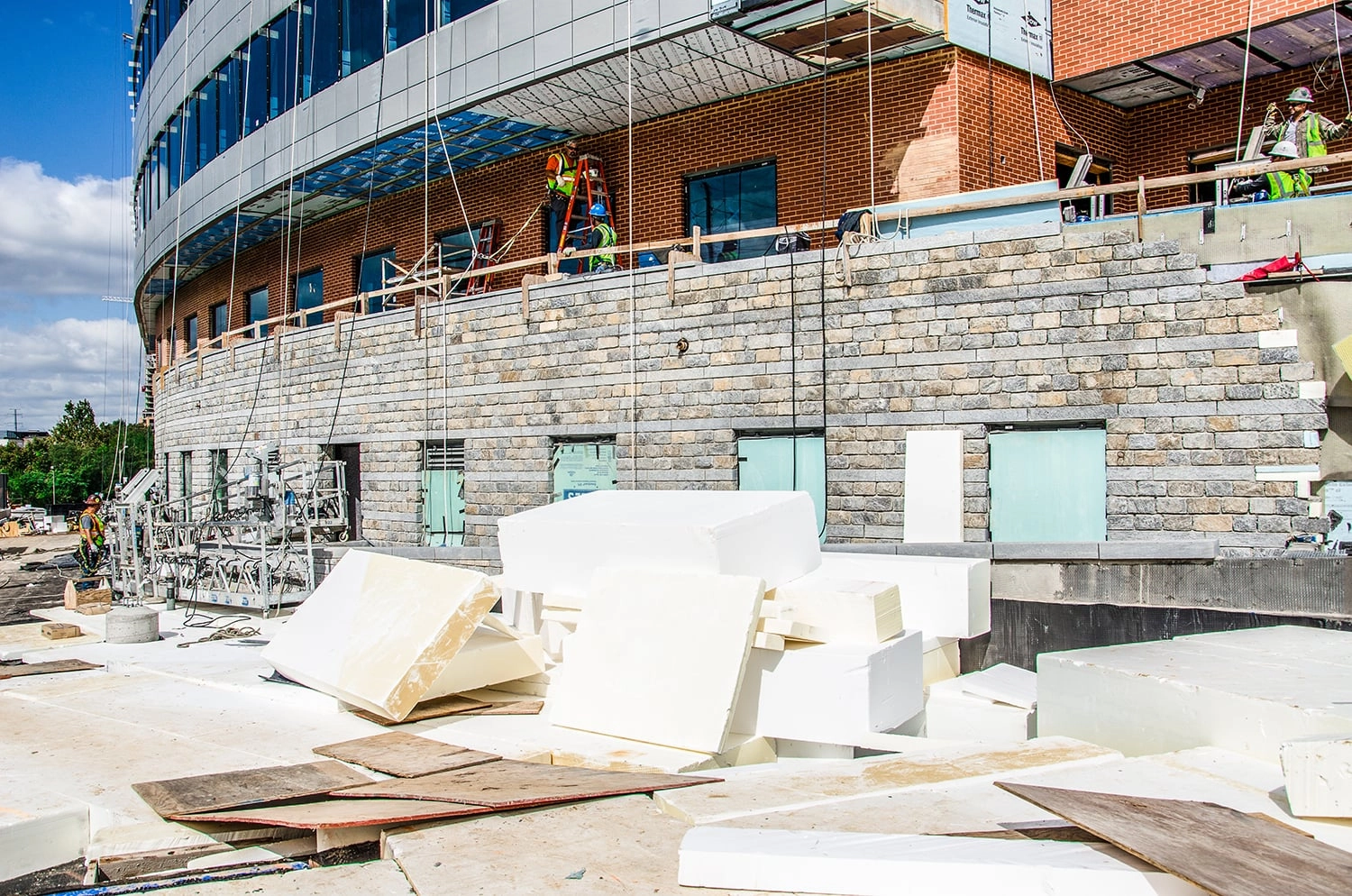 60 psi EPS foam (expanded polystyrene) was supplied to Clark Construction for use as void fill in the latest phase of the ReNew Project in Arlington Virginia. Universal Foam Products supplied 65,000 cubic feet of EPS weighing 3 lbs per cubic foot in blocks 48” x 96” x various thicknesses. The 60 psi EPS foam was specified by the engineer to reduce the loading on the underground parking garage below. Two Geofoam Hotwire Kits were used to perform the onsite cutting that was required. The Geofoam Hotwire Kit is the most versatile cutting tool available for onsite cutting of EPS.