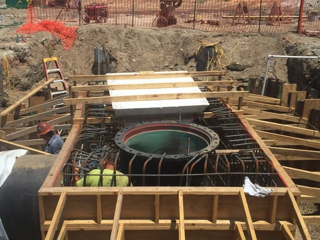 glued together were used to form giant hoppers for this waste water
