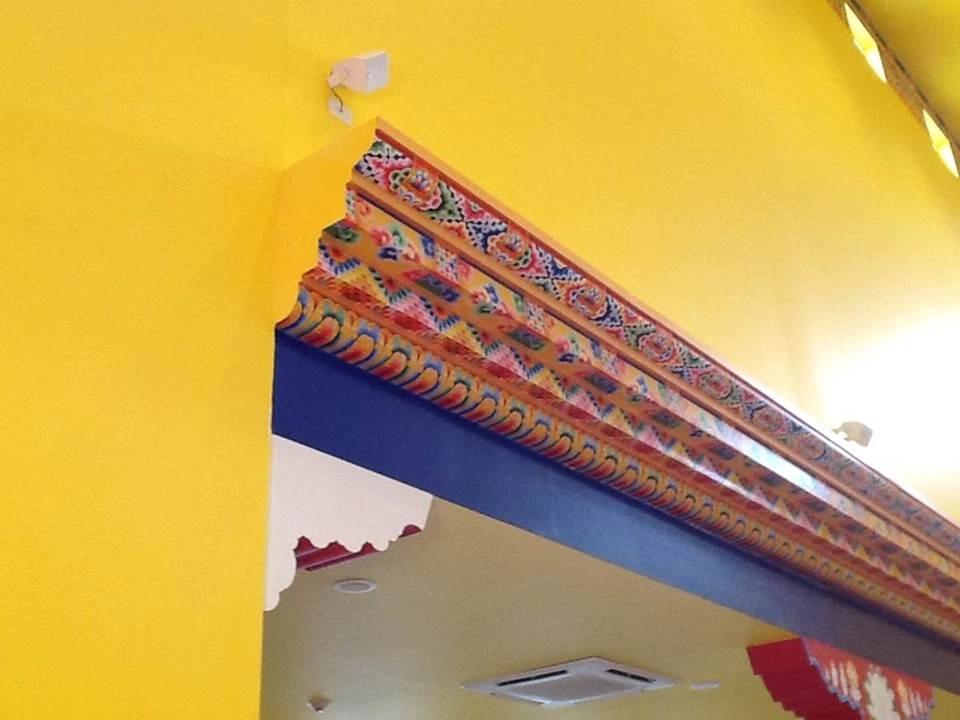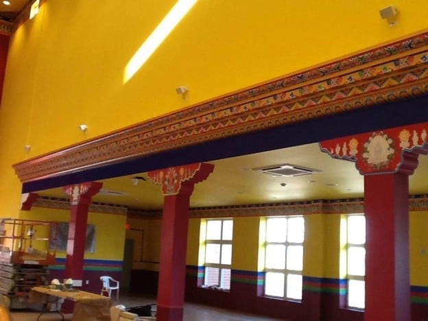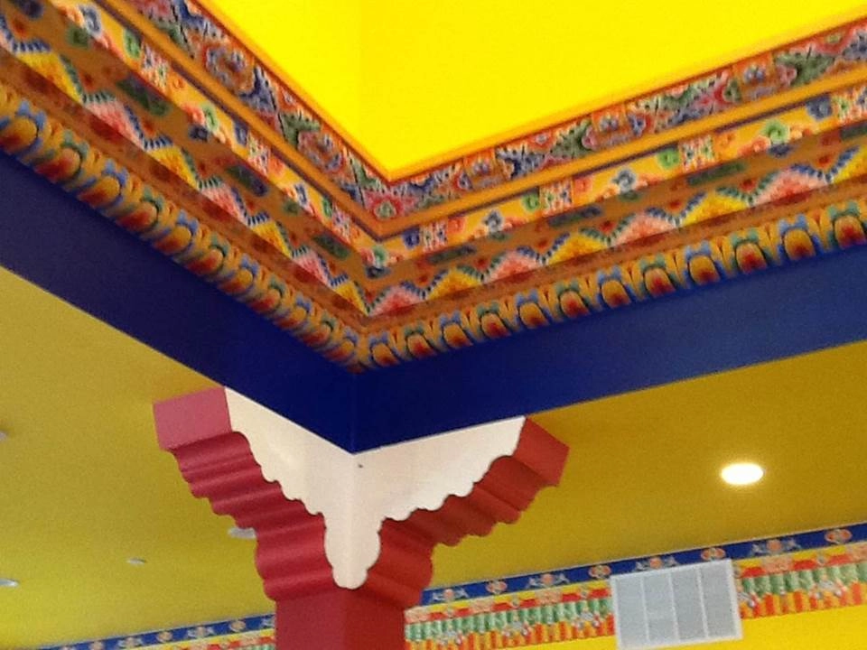 1.8 lb Virgin EPS was wire cut to create 6 different decorative crown molding profiles for this Buddhist Monastery in Wappinger Falls, NY. The moldings were hand painted and some decals were added. EPS in densities ranging from .9 lb to 1.8 lb per cubic foot are used to create an infinite number of architectural profiles and moldings including crown molding, columns with caps and bases, parapet caps and cornices. EPS Moldings are sometimes mistakenly referred to as Styrofoam Moldings).