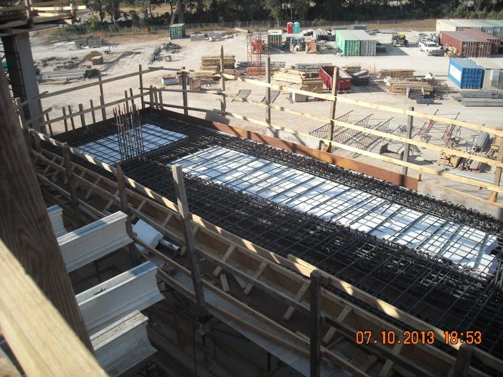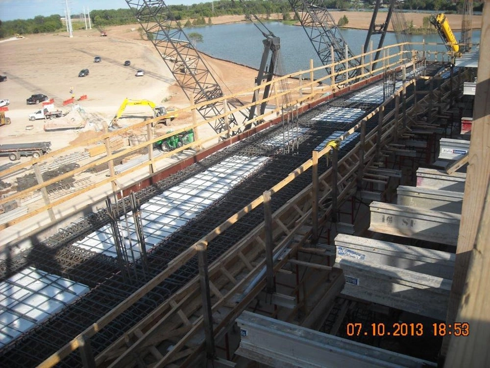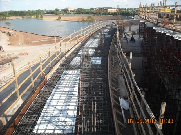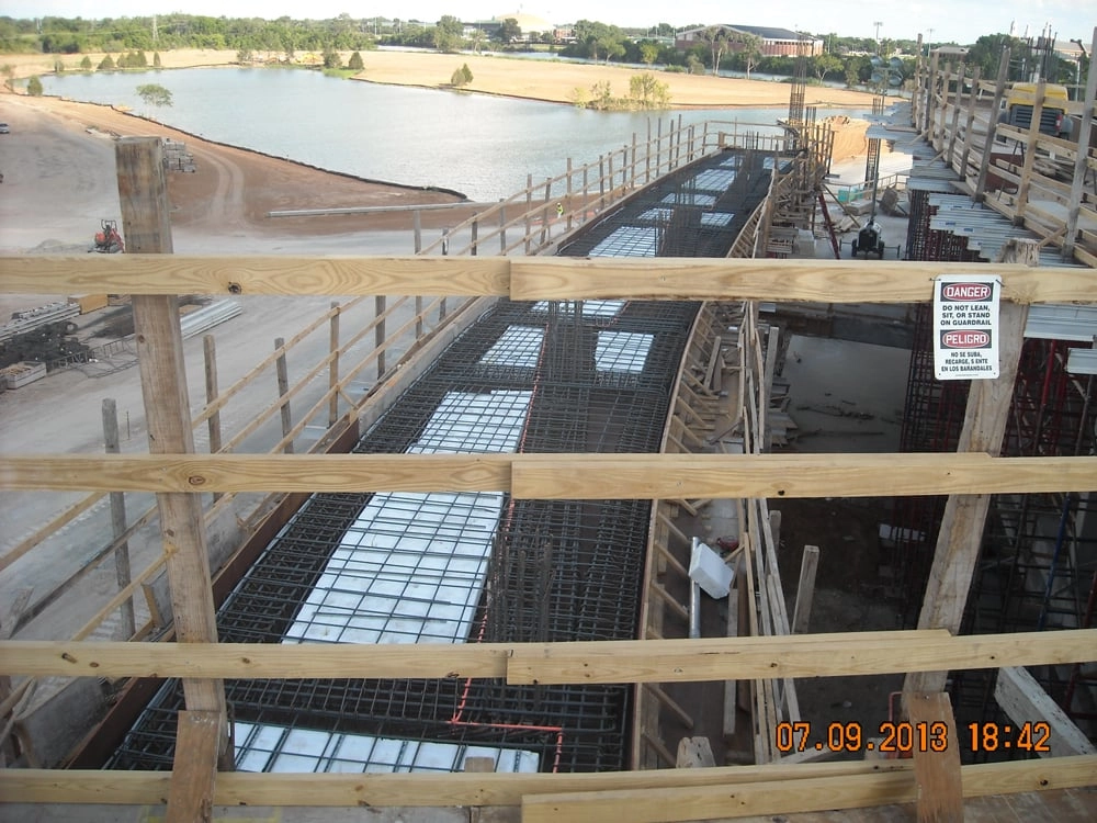United Forming, Inc was contracted to work on the new football stadium being built at Baylor University. They contacted Universal Foam Products because of the need for EPS 15 Geofoam void fill in various areas of the stadium. The geofoam was sent in sizes of 6” X 48” X 96”, as well as 9” X 24” X 96” to accommodate the different areas. Some cutting was done to ensure a proper fit. The pictures show the foam in place and ready for the concrete to be poured on a roof area of what the team calls a “Portal” on the East side of the stadium.
