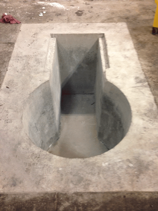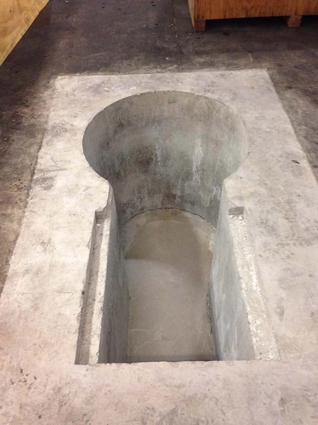 2.4 lb density EPS was used to create this keyway block-out to anchor a large CNC machine. The EPS block-out was set and the concrete poured. Then the block-out was removed to expose the opening. The CNC machine was anchored with a high strength grout.