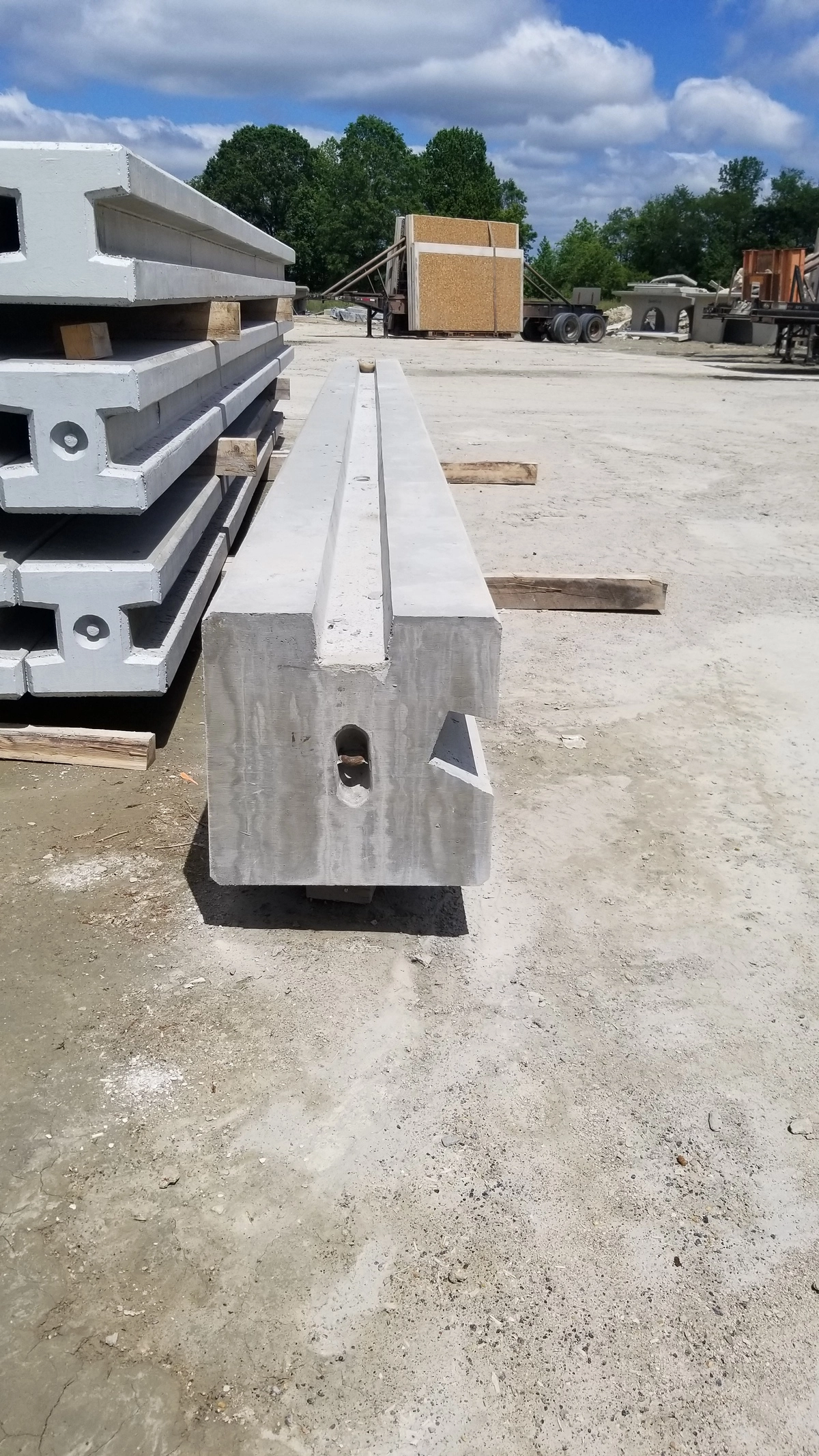 For this precast concrete project in King George, VA the manufacturer needed to block out an irregular channel concrete corner posts for a sound wall being constructed along I-66 in Virginia. For the rectangular slots, they used steel tube just like they always have but for irregular slots they used nominal 2 pound density EPS, cut to shape in four foot sections. They wrapped the EPS block-outs in duct tape and greased them before use which allowed for a clean release from the concrete and multiple uses for each of the block-outs.