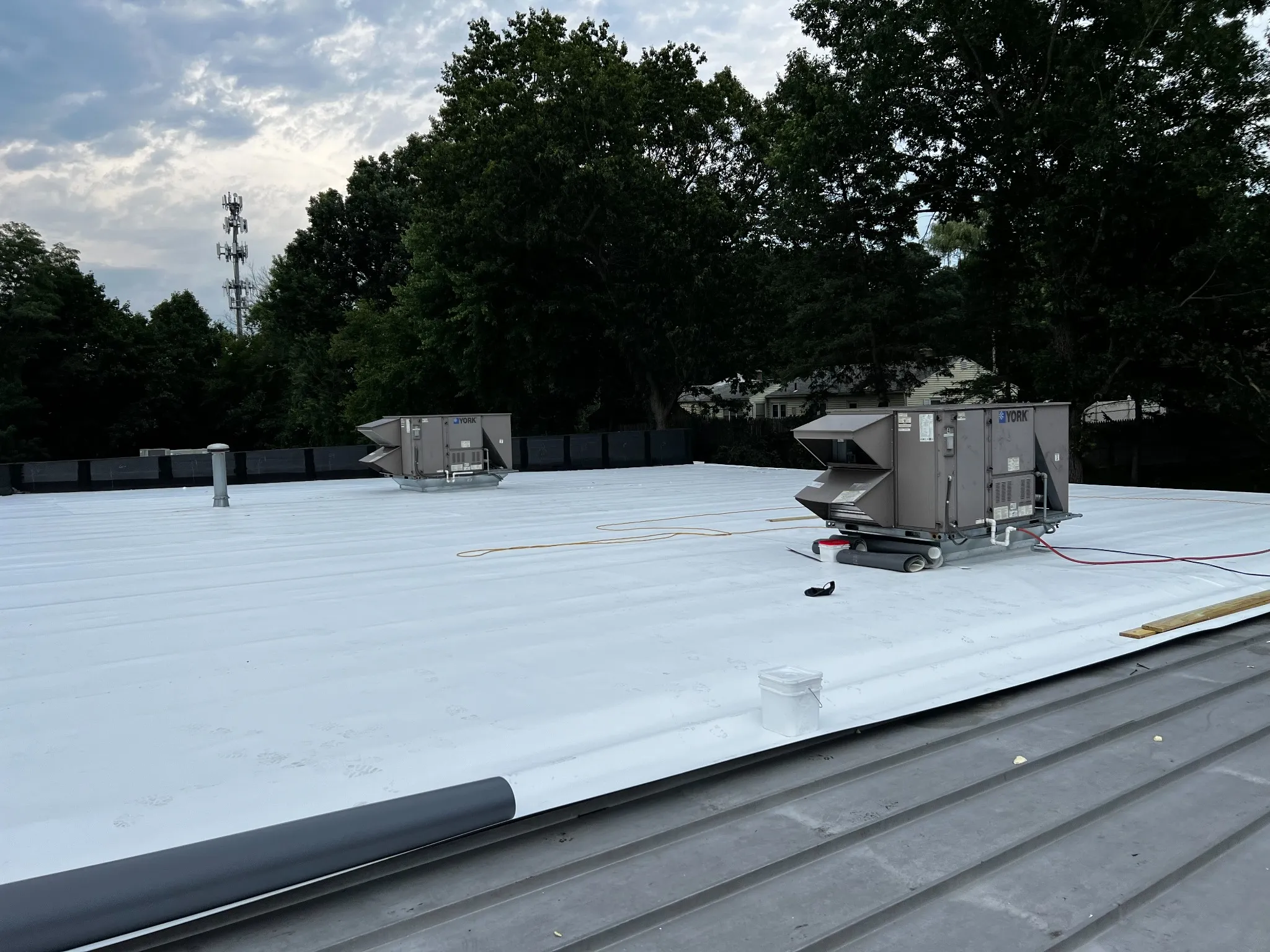 Universal Foam Products supplied 1 lb Virgin EPS Foam Flute Fillers measuring 2" x 15.5" x 96" for a commercial roofing project in Chicopee, MA. The EPS flute fillers were installed as a stable base layer, then topped with 1” ISO insulation and finished with 60 mil TPO roofing membrane.