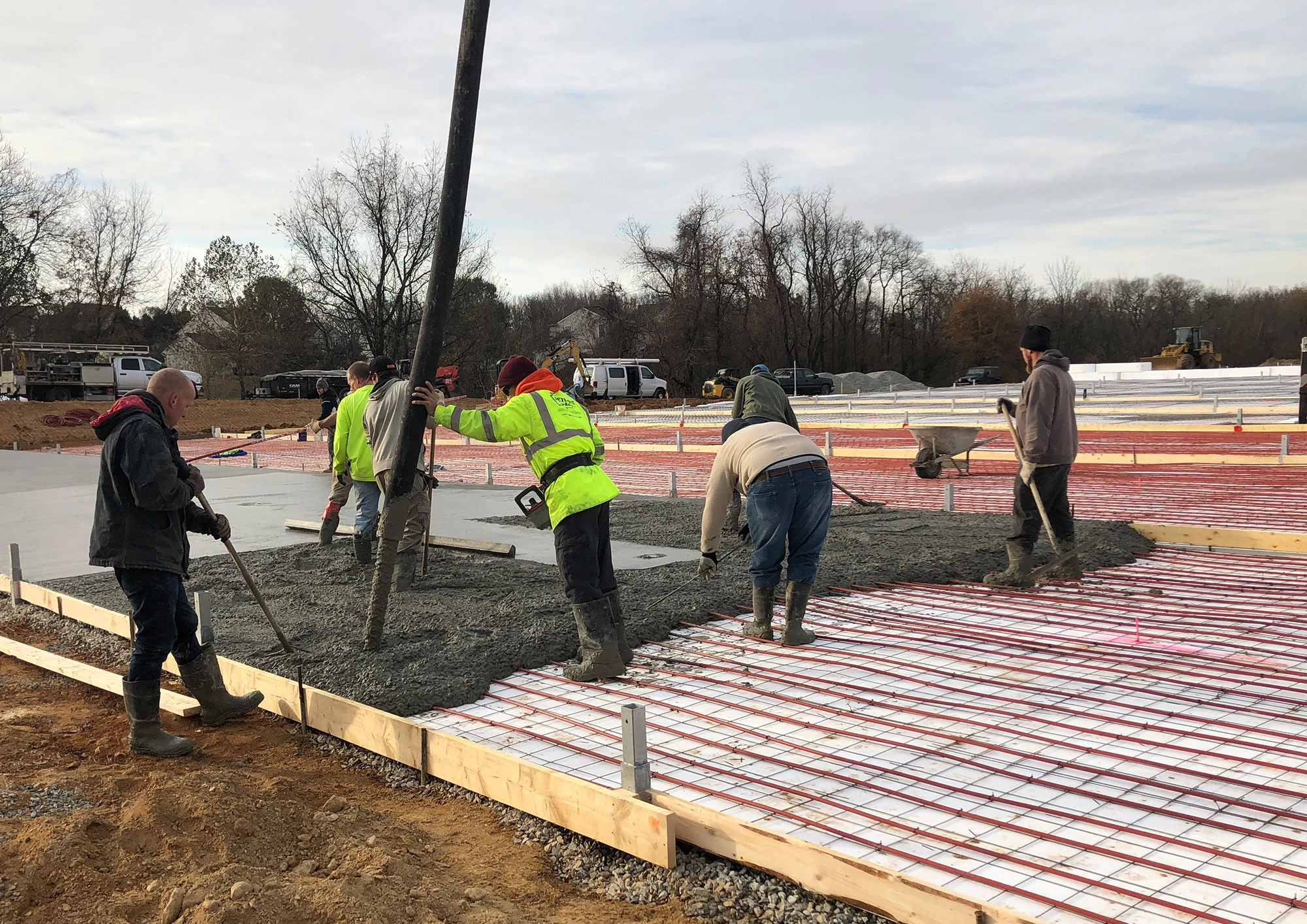 To install the insulation, the contractor first put down a layer of gravel to create a level surface. The foam was then installed with woven wire on top. The contractor wired the radiant heat tubing to the woven wire and then poured a 5.25" concrete slab. With the radiant heat tubing and the foam, the greenhouse can regulate its temperature easier and more efficiently. The insulated concrete slab holds and radiates the heat for an extended period of time.