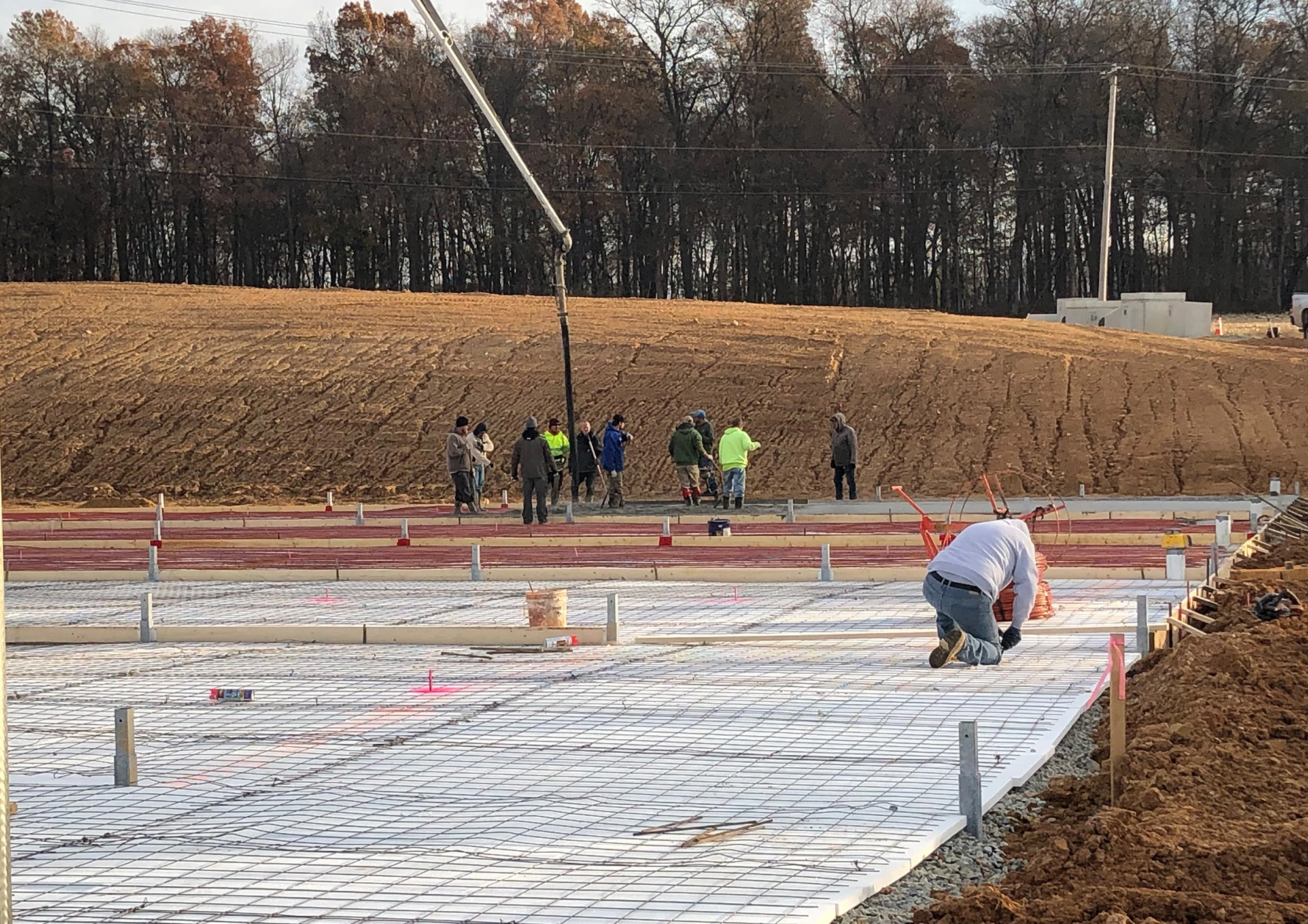 This contractor located in the Philadelphia area was building a 79,500 square foot greenhouse. They installed 1.5" thick 1.8 lb density EPS foam sheets under the concrete pad to insulate the in-floor heating system. This is the 2nd greenhouse project completed by this contractor with the rigid insulation being provided by Universal Foam Products.