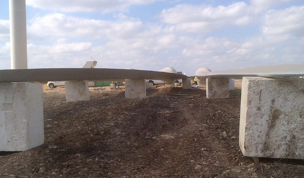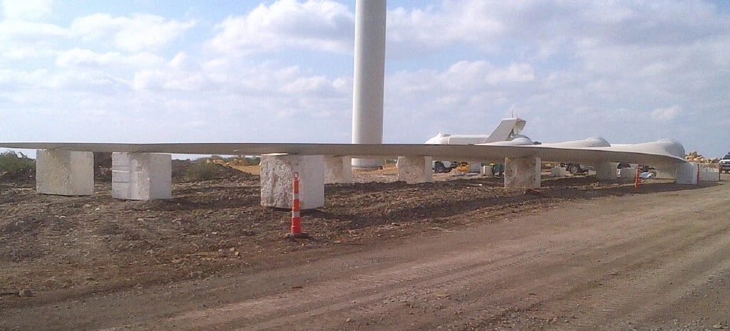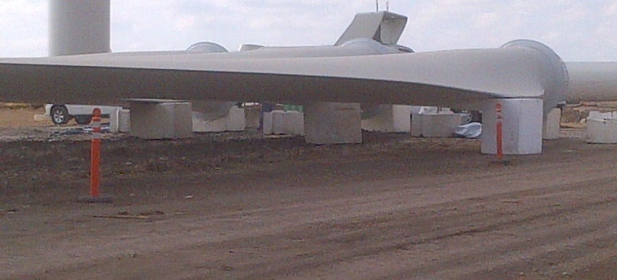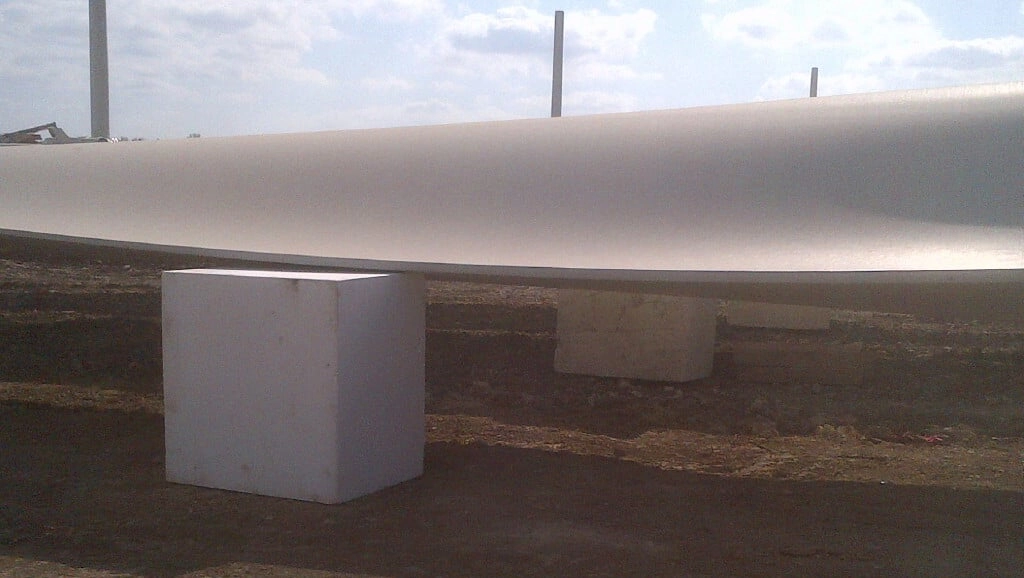 Universal Foam Products supplied large EPS Foam blocks to a Texas Wind Farm. These foam blcoks are used to support 30 meter long fiberglass blades prior to installation.