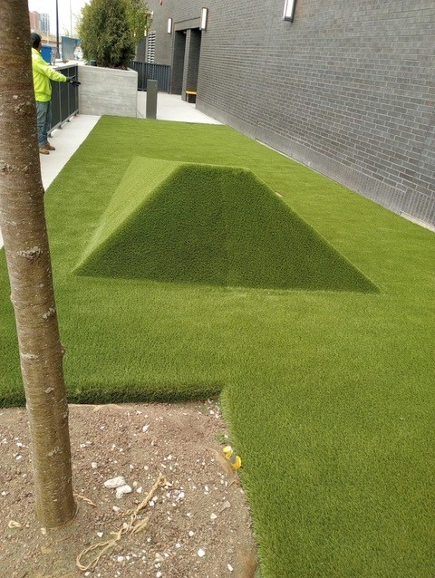 Universal Foam Products supplied EPS29 Geofoam for a unique project in a Chicago condominium building—a dog run featuring a pyramid-shaped mound. EPS Geofoam, known for its versatility, can be cut and shaped by Universal Foam Products into various sizes and forms, making it an excellent choice for applications like this. In this project, the foam served as the base for the turf on the pyramidical mound. To ensure durability and to prevent the foam from absorbing any dog urine, the foam was treated to be watertight. The result is a functional and visually appealing addition to the dog run, perfectly tailored to the needs of the space.