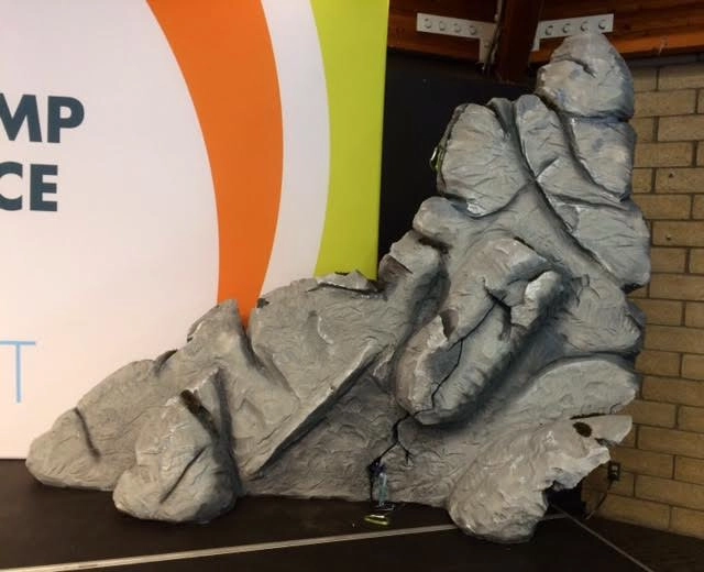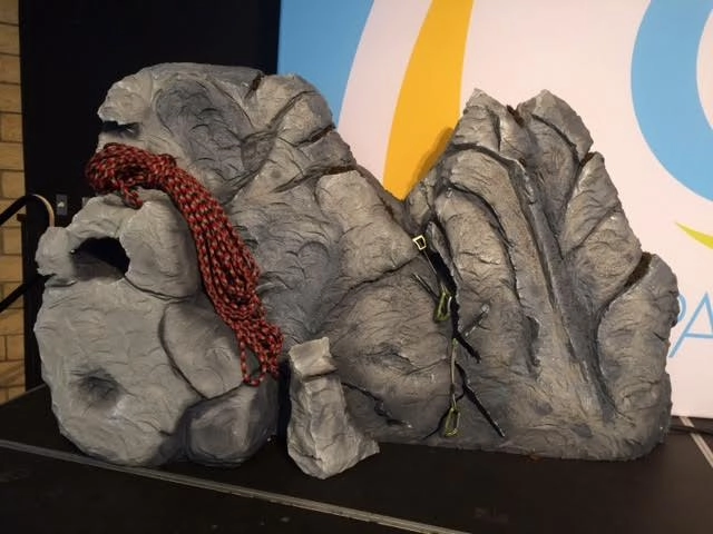 Rock Solid was the theme of the conference, so they needed some boulders! Having used Universal Foam Products for the past 4 years for all of their creative sculpting needs, they purchased 3 pieces of 1 lb density EPS 12” x 48” x 72” and used a hot knife and sculpting tool to do the carving. To give it dimension they hot glued chunks together. The eps foam rock formation turned out so well that, at the conference, they were asked do a seminar next year on sculpting with foam.