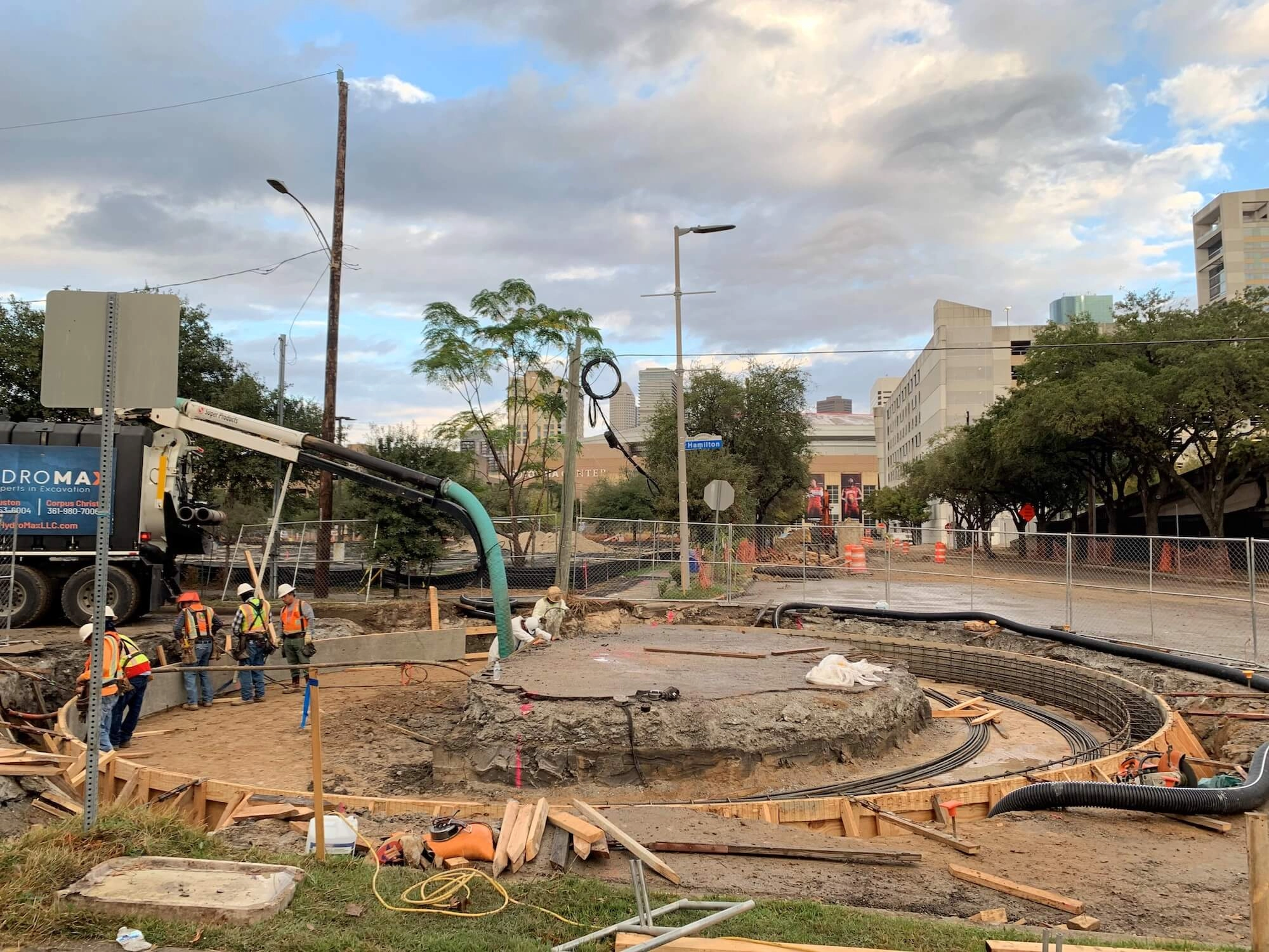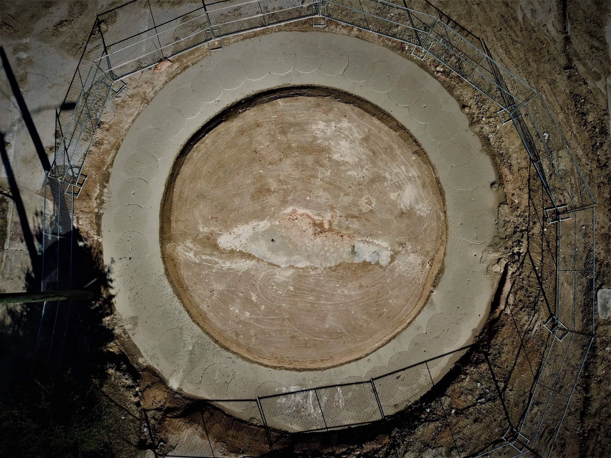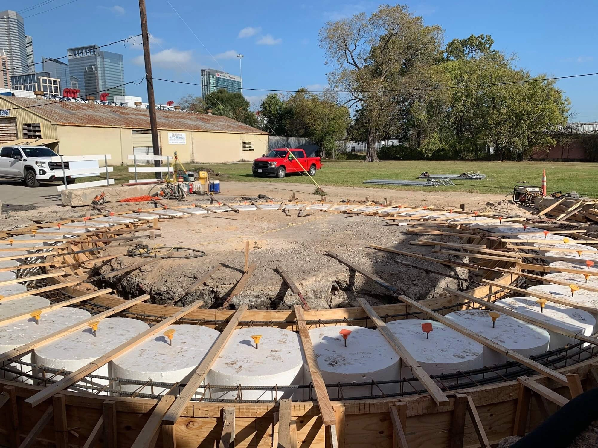 Secant pile forms constructed of expanded polystyrene have become the industry standard due to their low cost, versatility and ease of installation. The EPS forms can be provided in any diameter, any spacing and any depth required. Typically produced of 1 lb or 1.5 pound per cubic foot density EPS, they do not need any special equipment to be set in place because of their light weight. For this project in Houston, Texas, 80 forms 42” in diameter were provided to create 2 circular water tight areas. Each of the EPS forms has a hole in the center so that rebar can be installed and driven in the ground to anchor the form in place. After the inside and outside of the forms are formed and the concrete is installed, the rebar is removed prior to the drilling operation.