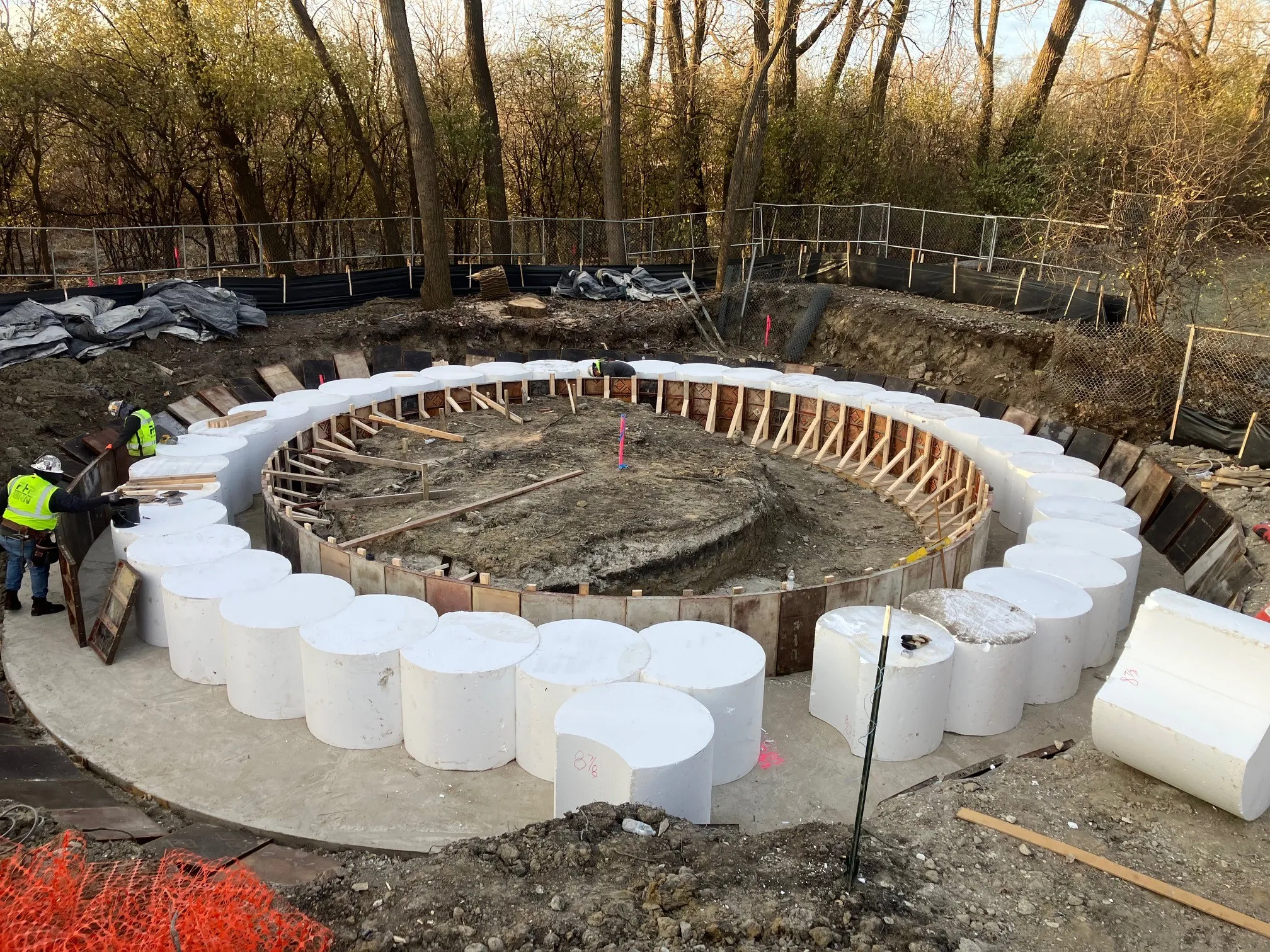 This Secant Pile Form project located in Chicago, Illinois, consisted of two different shafts and a total of 68 piles, each measuring 47-9/16” in diameter by 36” in height, with a cut-out to allow for a 9” overlap. EPS Secant Pile Forms are lightweight, pre-molded shapes made from expanded polystyrene foam used to create accurate and efficient voids for secant pile construction. They simplify the forming process by eliminating the need for complex, labor-intensive wood or steel forms. EPS forms are custom-cut to match the required pile geometry, ensuring precise alignment and minimal concrete waste.