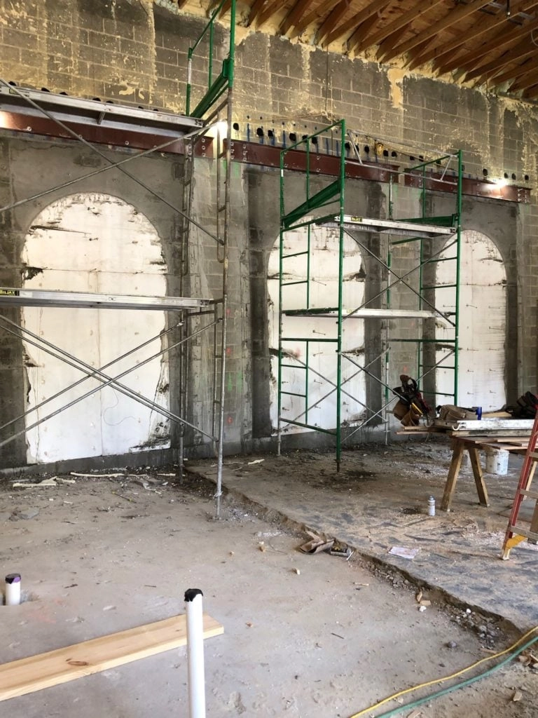 Expanded Polystyrene block-outs, sandwiched between two straight concrete forms, are the easiest, most cost-effective way to create any unique shape in a concrete wall. Six archways, in this Sea Island, Georgia resort, were created using .9 lb. density EPS. Two pieces were used across the bottom and one radiused piece for the top. The wall is 12” thick and the finished arches are 6’ 4” wide and just under 12’ tall. The contractor secured the EPS blocks between straight forms before pumping the concrete. EPS block-outs like these are generally not reusable but many applications are designed so the foam can be reused multiple times.