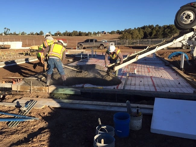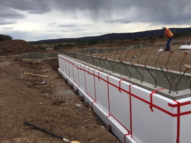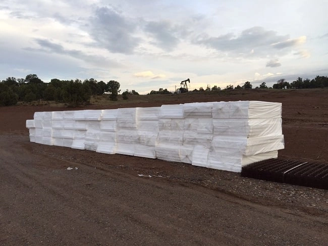 Type IX Expanded Polystyrene rigid insulation was used to insulate the foundation and concrete floor slab of this transportation facility near Four Corners, CO. The 1.8 lb density EPS insulation was used because it provides the most economical R-Value of any comparable rigid insulation material. The 4” thick EPS insulation panels have an R-Value of 17.4. The seams were taped to limit air infiltration. 284 panels were used to complete the project