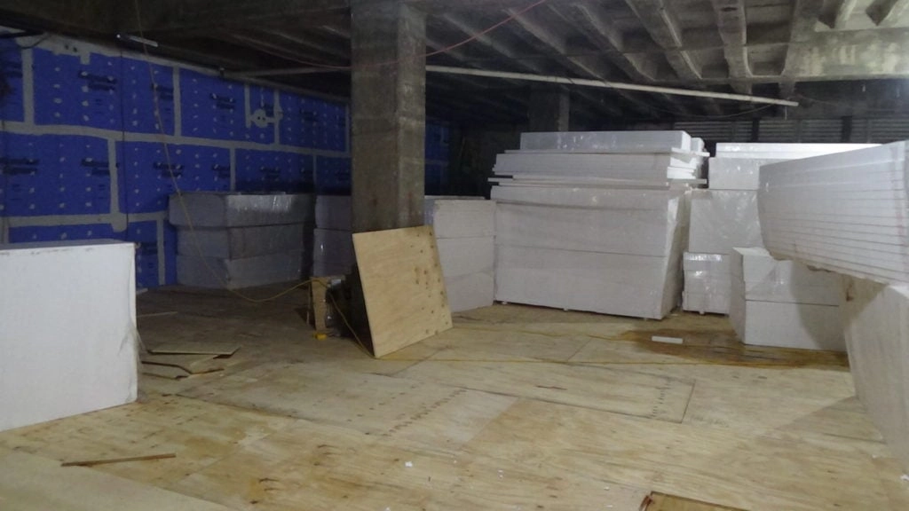 Installing ¾” plywood over 2” thick sheets of .9 lb Recycled EPS has