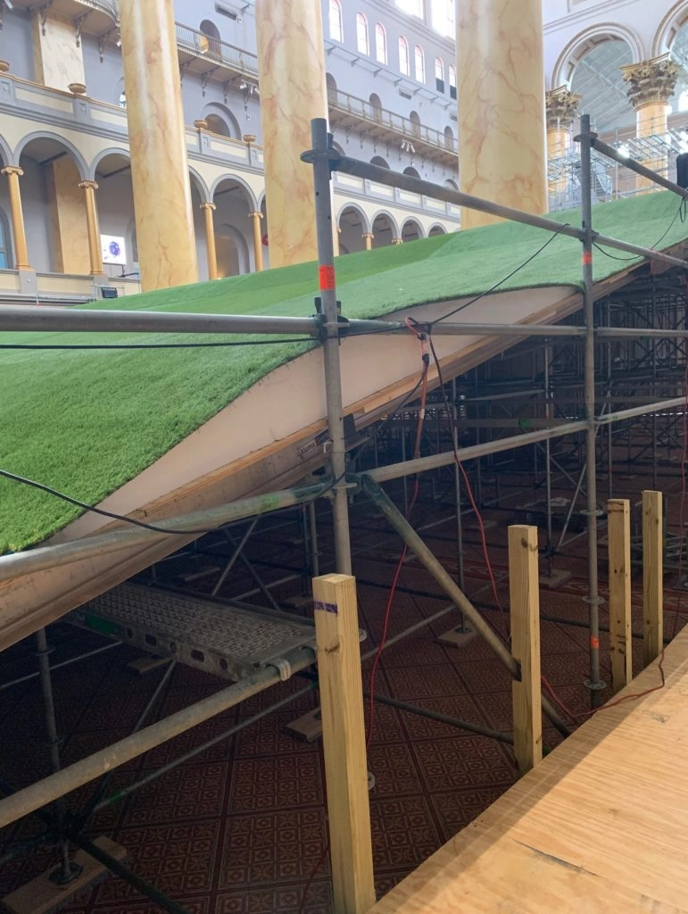 made from 1.8 lb density EPS and running the width of the exhibit to