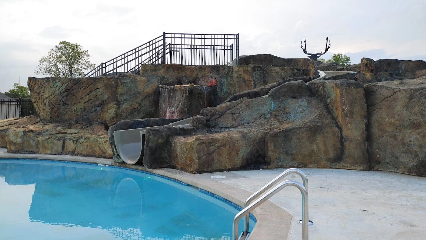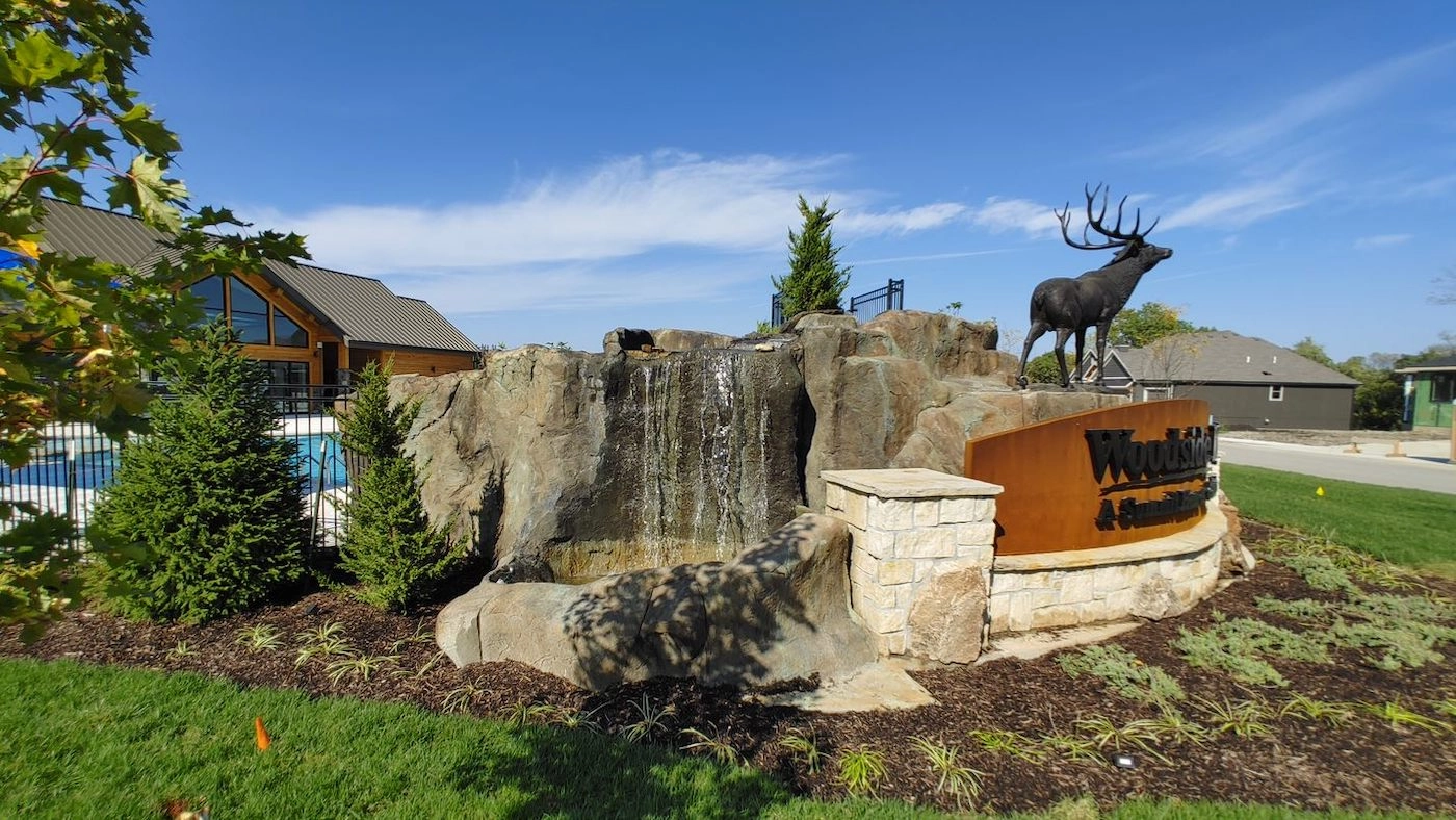 The contractor on this project, located in Lees Summit, MO used .9 lb density EPS Foam to create a Faux Rock feature for the Reserve at Woodside Ridge entry way to the community and pool. On this project, untrimmed 36” x 48” x 96” large blocks were provided and shaped on site. The EPS foam blocks are great for this project because they are light weight, ease to carve and strong and durable. The Expanded Polystyrene was carved then coated with a structure cement coating to give it a boulder look and feel.
