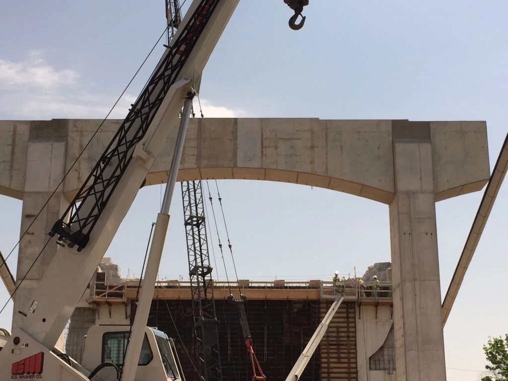 An EPS39 Geofoam form liner 40′ Long x 5′ Wide x 3′-5 3/16″ high along with two triangular form liners 24-1/16″ x 60″ x 84″ of the same material were used to form up the curved and tapered underside of this concrete bridge support. The contractor used ¾” plywood on top of the Geofoam and was able to use the forms multiple times. Here is what the Project Engineer had to say about the material “I think the EPS was a good choice. It saved a tremendous amount of carpenter work and left us with a nice product. This project has been complicated as is; with the EPS it made this particularly complicated piece of work very simple.” 4