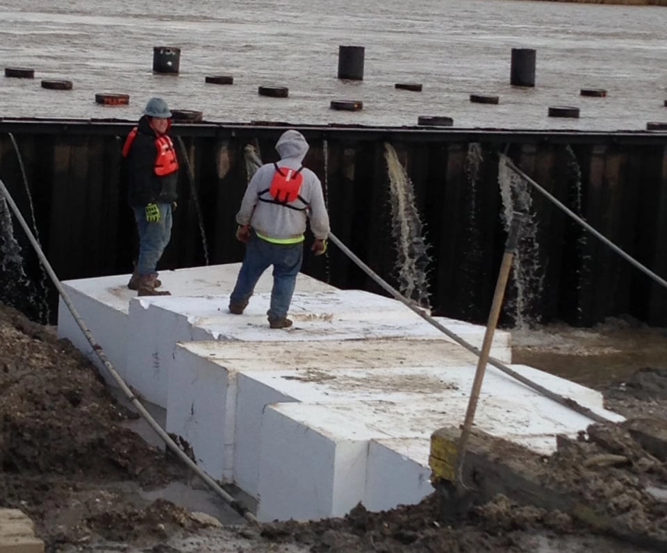 Over 60,000 cubic feet of EPS29 Geofoam was used on this project in Louisiana in place of other fill material due to the very poor soil conditions. The 36” x 48” x 96” geofoam blocks were placed behind the water retention wall and then backfill was placed on the blocks to stabilize the site.