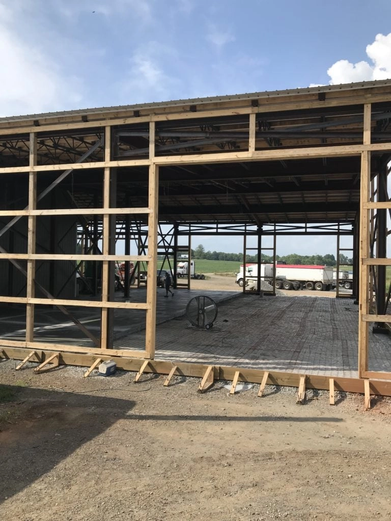 How you insulate a pole building or pole barn will be determined in part by the use of the building. This trucking company in Amelia, Virginia needed a large open space to service semis and trailers. For insulation he wanted just enough R-Value to reduce the intensity of the sun in the summer and take the edge off the cold in the winter. He decided on 1-1/2″ thick 1 lb. density expanded polystyrene panels with an R-Value of 5.75.