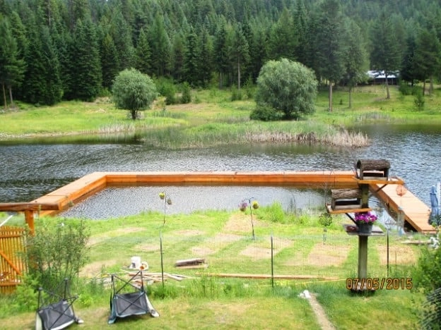 The docks were originally constructed using some existing float drums the owner had along with the purchase of 16 blocks of EPS, but after removing the dock sections for the winter, the drums were replaced with additional EPS floats because the owners learned “those we made using barrels are not as moveable as the ones made with foam”.