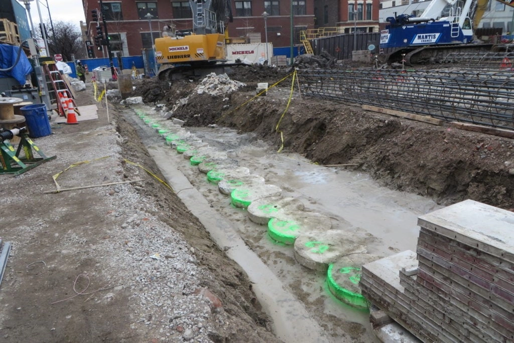 This secant wall project in Chicago enclosed and area 250’ x 330’. The