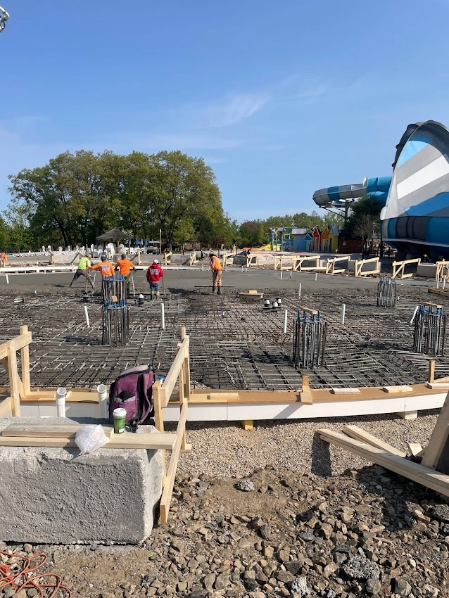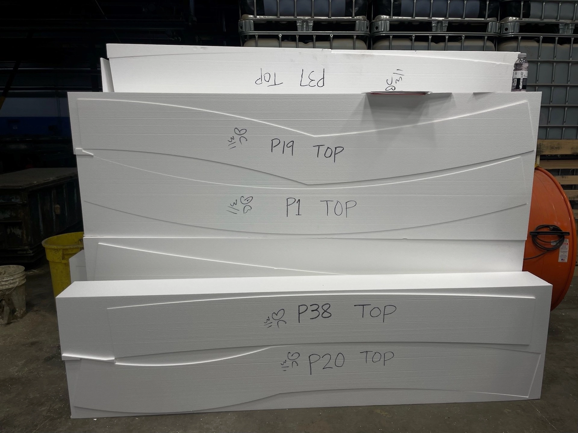 One of the more unique applications for EPS (expanded polystyrene) is the production of meandering drain forms for the type of drains found in splash parks. There are off the shelf metal forms for circles and ovals but the larger meandering drains require customer forms. At Universal Foam Products we have been providing these forms all over the country for the past several years, shipping from locations also in various parts of the country. The forms, which typically taper from top to bottom and also vary in depth to provide drainage, are produced on a CNC wire cutter or router. A single drain system can consist of many dozens of unique pieces so each piece is labeled and a drawing is provided showing where they are to be placed. The top part of each form is plywood which overhangs the EPS form on both sides creating the ledge where the drain grate will rest and also providing a durable surface where the drain forms can be secured from overhead prior to installing the concrete.