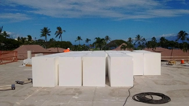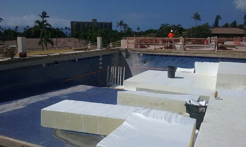 This swimming pool infill project on the island of Maui, Hawaii used 36 blocks of EPS15 Geofoam 36” x 48” x 96”. The contractor purchased the full billets of EPS Geofoam along with a Geofoam Hotwire Kit so he could do the cutting on site. The hot wire kit allowed him to make 8’ cuts accurately with no mess.