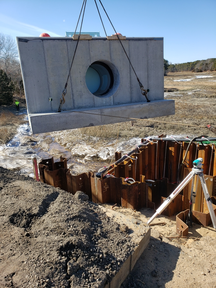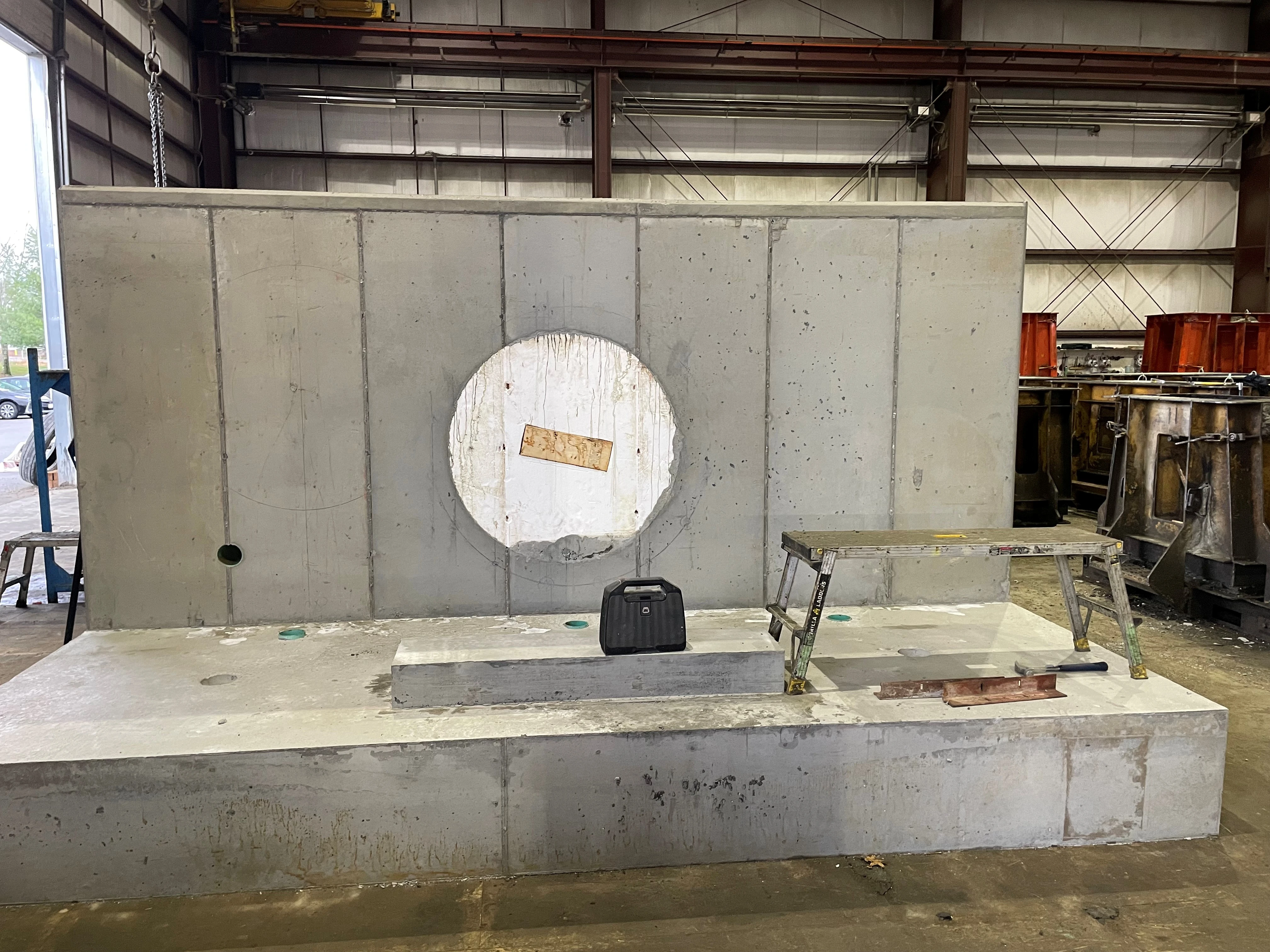 This custom tide gate headwall precast project was used for a Massachusetts DOT infrastructure upgrade in the city of Wellfleet. To meet the demands of tidal flow and ensure structural integrity in a coastal setting, the design required highly accurate formwork. Universal Foam Products supplied a crucial component—a 42-1/4" diameter by 18" thick cylindrical piece of EPS (Expanded Polystyrene). The EPS cylinder was precisely cut to create a smooth, round opening for the tide gate, simplifying the forming process. EPS was chosen for its lightweight properties, ease of handling, and ability to meet the shape and durability requirements of the concrete pour. The finished headwall was precast offsite and delivered ready for seamless installation.