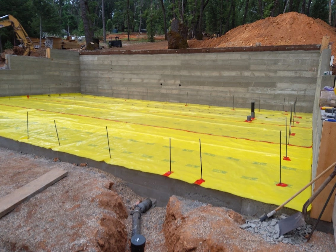 This customer purchased EPS Foam in 2" x 48" x 96" sheets to help insulate under slab on this residential construction project in Grass Valley, CA . They first placed down a vapor barrier to help with any moisture with the Expanded Polystyrene. Once the foam was in place they set radiant tubing on top to help with energy efficiency. With the insulation and radiant heating this home will now be cozy and comfortable.
